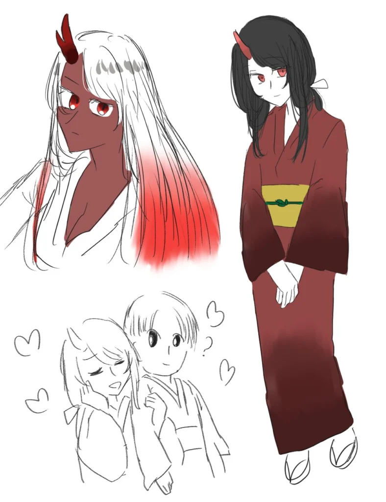 テーマが節分にちなんで「鬼」なので可愛い着物女の子描きました。