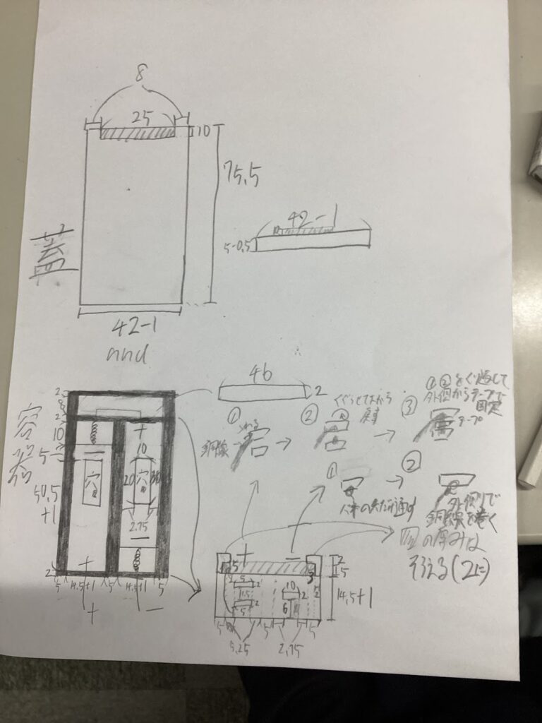 20251117 山﨑 月翔 56回生 X Bluesky はてブ LINE Pinterest コピー 2025.11.182025.11.21 この記事は約1分で読めます。 目次 1118(火)1119(水)1120(金) 1118(火) まずはこいつを作っていく計画です。 1119(水) これを基にして、3Dプリンターで電池のケースを作成していきたいと思います。 1120(金) 電池ボックスの設計図です。単三電池2つの直列つなぎが施されています。これをblenderで作っていきます。
